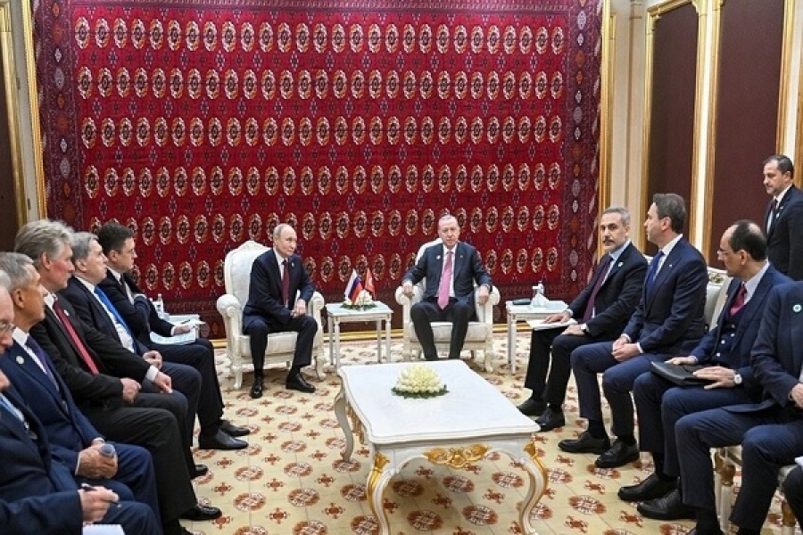 وكان المتحدث باسم الكرملين دميتري بيسكوف قد أعلن، اليوم الجمعة، أن الرئيس الروسي فلاديمير بوتين ونظيره التركي رجب طيب أردوغان بحثا القضايا الإقليمية والدولية خلال محادثات جرت في تركمانستان.