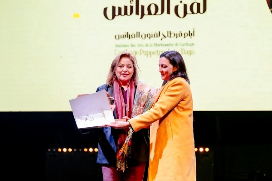 ثم جاءت فقرة التكريمات والتي تحاكي صيرورة المركز الوطني لفن العرائس في خمسينيته، حيث كرم المهرجان كلا من الفقيد عبد العزيز الميموني، والمديرة السابقة لأيام قرطاج لفنون العرائس والمركز الوطني لفن العرائس منية عبيد، وقيدومة العرائسيين حبيبة الجندوبي واحد المديرين الذين مروا بالمركز قاسم اسماعيل الشرميطي.