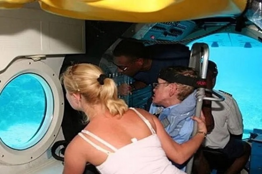 وقبل انعقاد المؤتمر التقطت له صورتان في جزيرة ليتل سانت جيمس التي تعرف إعلاميا باسم "جزيرة أطفال إبستين"، ظهر في إحداهما خلال حفل شواء مع عدد من الحضور، وفي الأخرى وهو يتجول في قاع البحر داخل غواصة خاصة عدلها إبستين لتناسب حالة هوكينغ الصحية بعد إصابته بمرض العصبون الحركي.