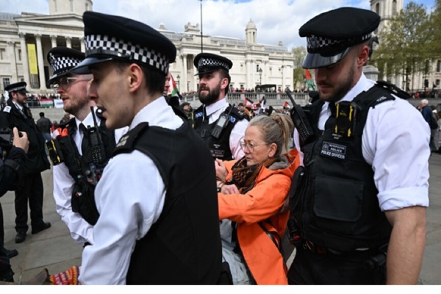 وذكرت شرطة لندن، في بيان، أن قواتها أوقفت 92 شخصا خلال ساعة و50 دقيقة من بدء الاحتجاج، مشيرا إلى مواصلة عمليات التوقيف.